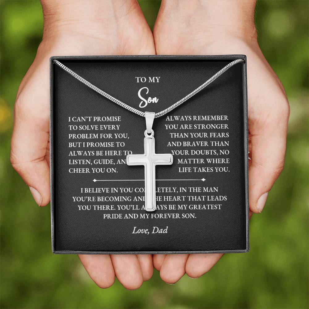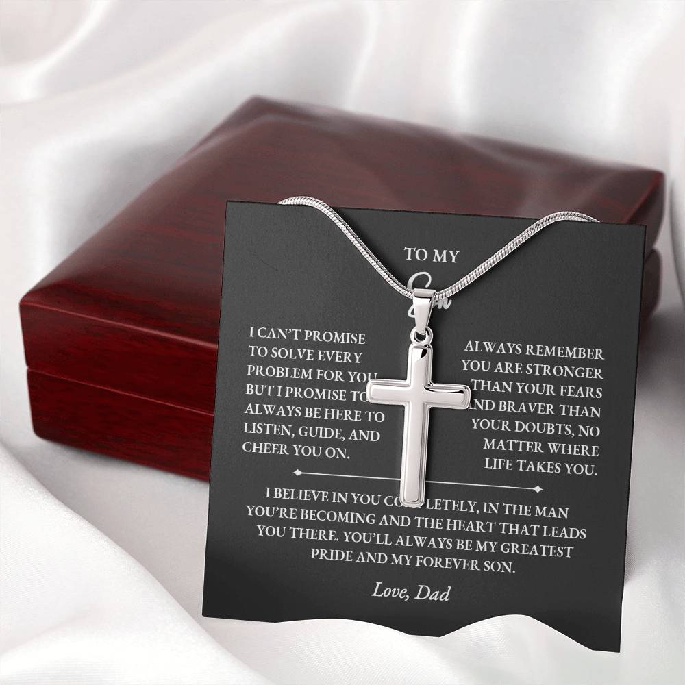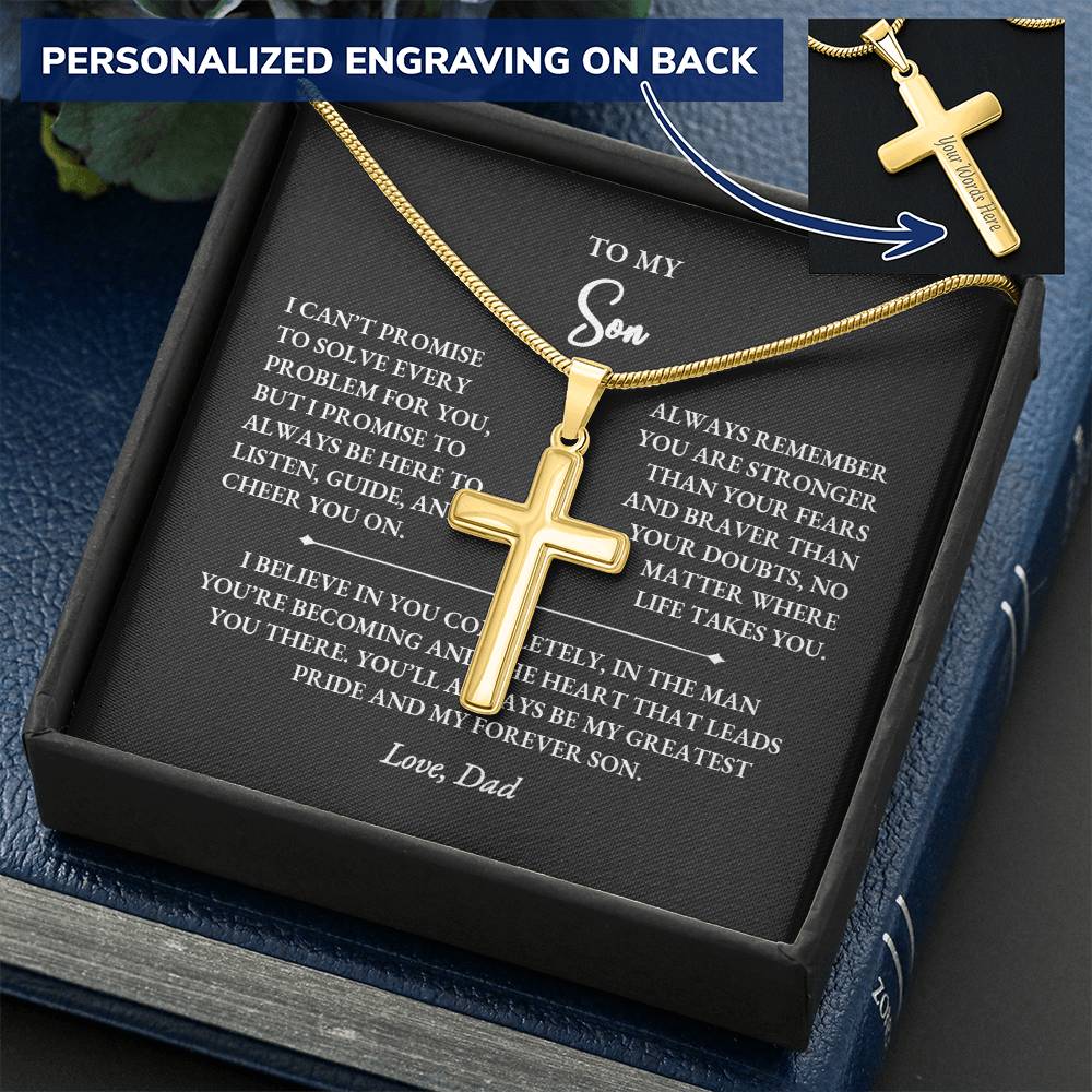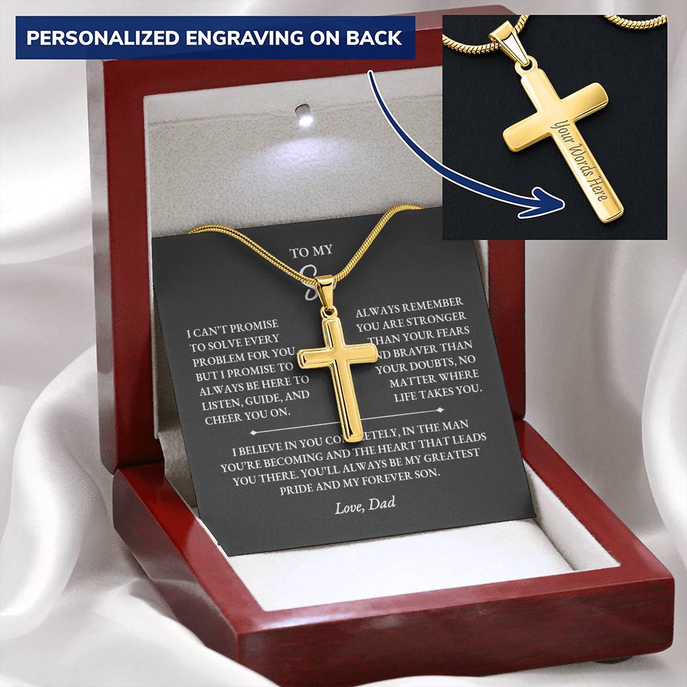 Give your son a meaningful reminder of your love with this personalized cross necklace gift for son from dad. Designed to symbolize strength, courage, and faith, this custom engraved cross pendant becomes a keepsake he’ll treasure for years. Whether it’s for his birthday, graduation, Christmas, or simply to remind him you’re always with him, this heartfelt gift is the perfect way to show your pride and support.